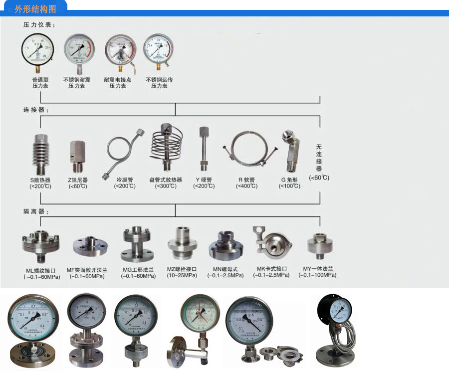 所以該儀表具有動作可靠、使用壽命長、觸點開關功率較大等優點。為能適應被測對象的各異和需求,本系列儀表在原有普通型和專用型的基礎上,又相繼抗振型、耐蝕型、耐用蝕抗振型以及帶有隔離裝置等多種型號的產品(包含氨用、氧氣、耐溫、耐震等不同系列)。