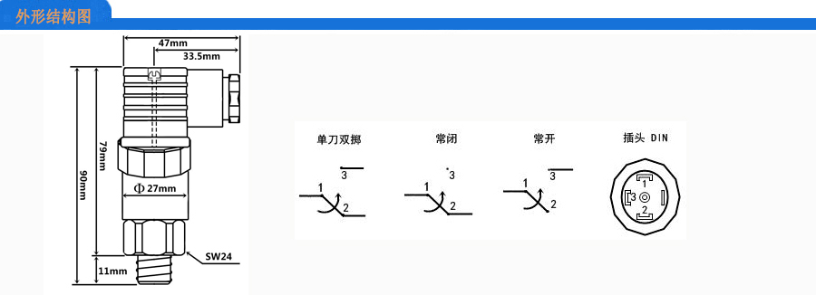 FX-YK46系列精巧型壓力開關內置活塞與彈簧相連當壓力變化時,彈簧伸縮量發生相應變化,當壓力達到設定值時,會觸發預設的機械結構并發出開關信號。 產品特點: FX-YK46系列精巧型壓...
