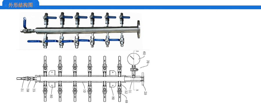 氣源分配器由進(jìn)口、主罐和多個(gè)均勻布置在所述主罐上的輸出口組成,所述輸出口包括輸出嘴和控制閥,輸出口連接供氣儀表或其他裝置。氣源分配器的有益效果是集中供氣操作更加方便,連接方式多樣,材料可選,供氣點(diǎn)數(shù)可變,使用壓力高;具有結(jié)構(gòu)簡單,維修方便,加工成本低、效率高,壓力損失小等優(yōu)點(diǎn)。