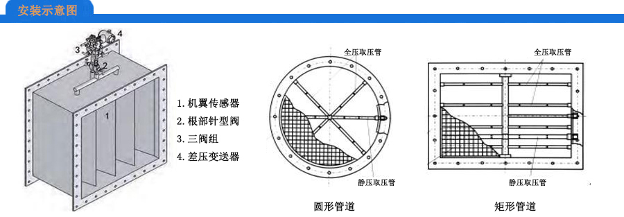 產品圖分別是單機翼和雙機翼形(也可是多機翼)機翼形測風裝置。從圖中可以看到它