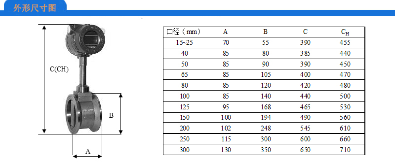 注:DN250~DN600可按客戶要求訂貨;DN300以上口徑推薦使用插入式渦街流量計。
