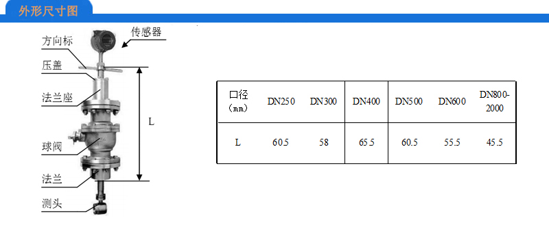 注:DN250~DN600可按客戶要求訂貨;DN300以上口徑推薦使用插入式渦街流量計。