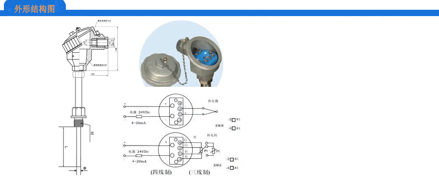 雙支(一個4~20mA、一個Pt100)