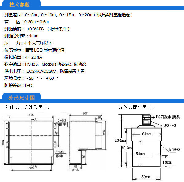 FX-UCWF分體式超聲波液位計是由傳感器(換能器)和主機(顯示器)兩部分組成,之間用信號線連接起來,主要用于安裝位置不便觀察液位數據,將主機壁掛在合適的位置。 分體式超聲...