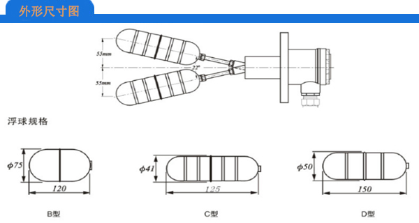 側(cè)裝式浮球開關(guān)是利用液體浮力原理,當浮球液位開關(guān)因浮力作用而上下運動時,接線盒