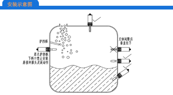 A.頂部安裝,探頭垂直向下,可安裝在頂部(遠離進料口)的任何位置;