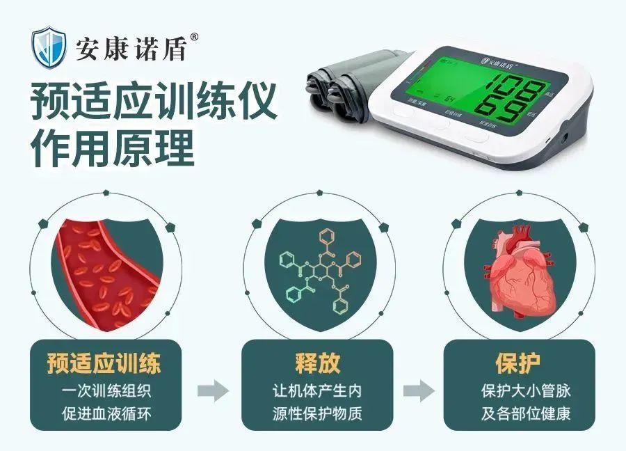 安康諾盾預(yù)適應(yīng)訓(xùn)練儀就是這樣一款儀器,通過對(duì)人體進(jìn)行反復(fù)、短暫、無創(chuàng)傷、無危害的缺血預(yù)適應(yīng)訓(xùn)練,激發(fā)人體免疫系統(tǒng)的應(yīng)急機(jī)制,從而達(dá)到預(yù)防心腦血管等疾病的發(fā)生。